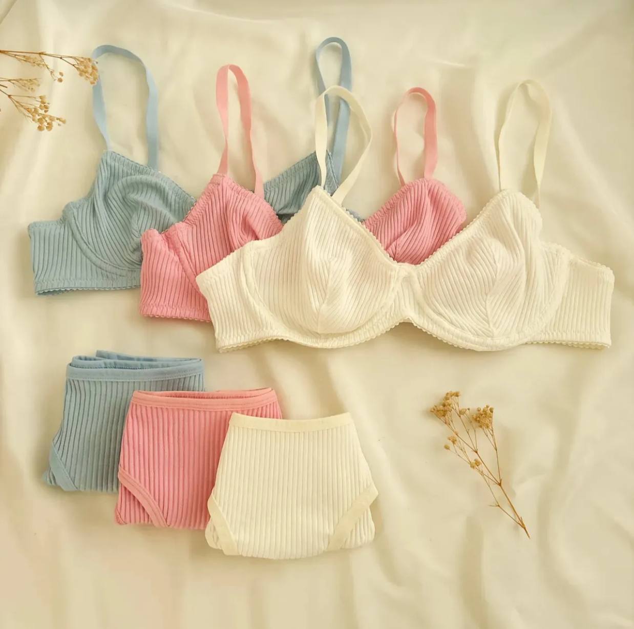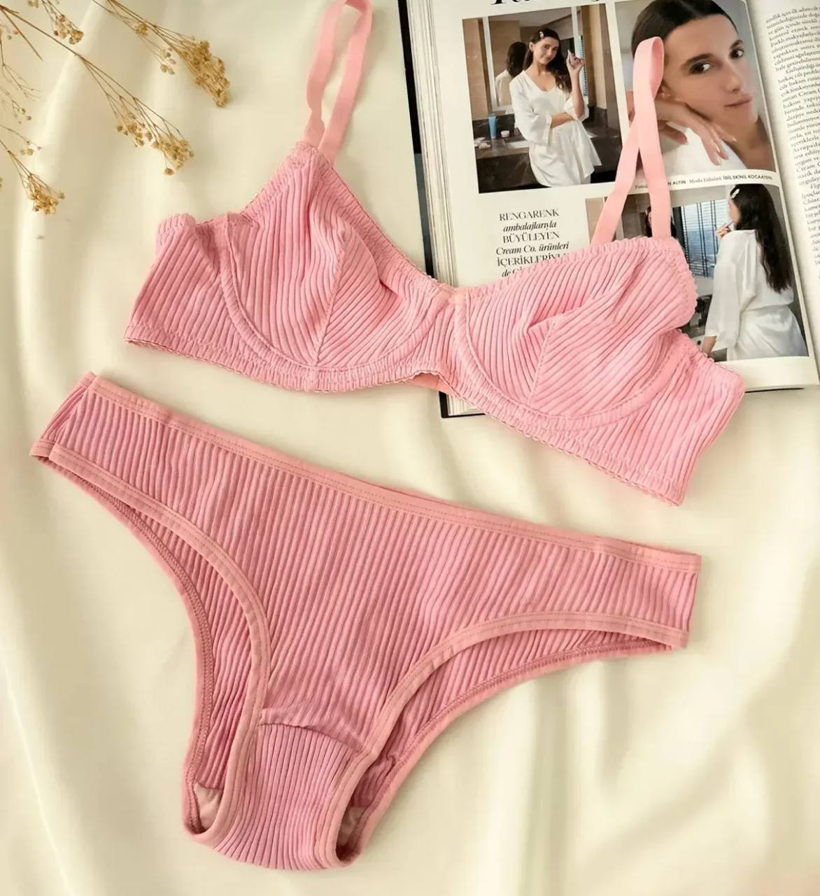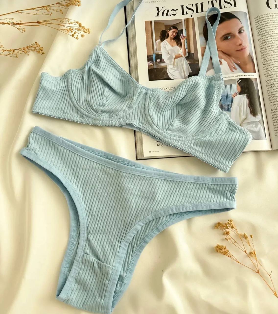 طقم حماله صدر من ثلاثه قطع قماش قطن مشطب