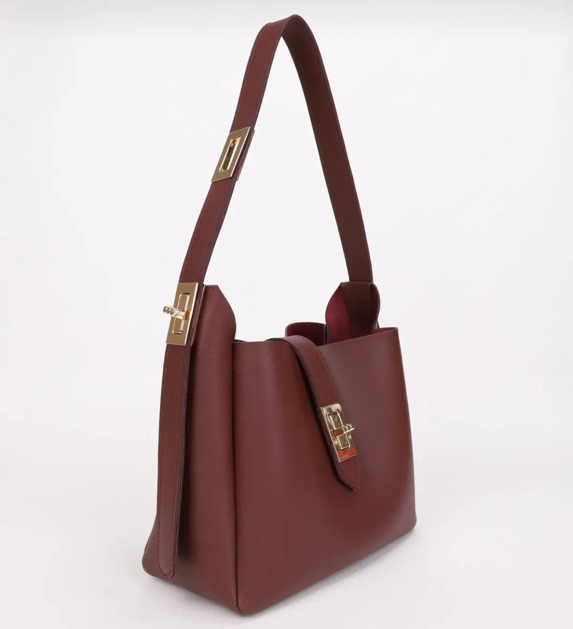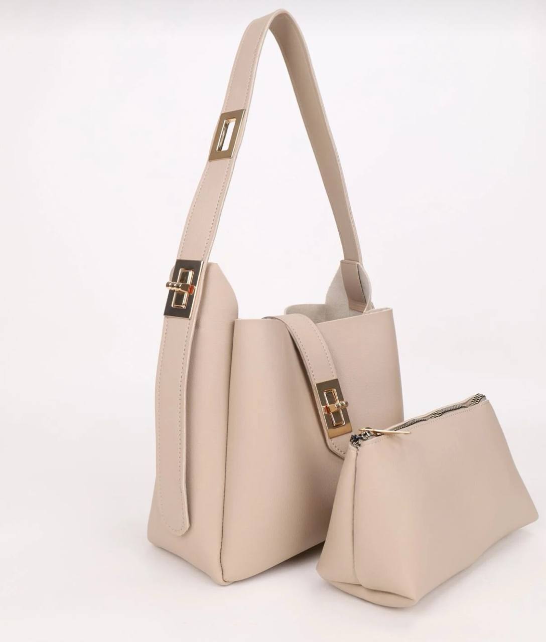 حقيبه يد وكتف نسائيه من قطعتين باكسسوارات وحزام وقفل باللون الذهبي قابل للتعديل مع محفظه
