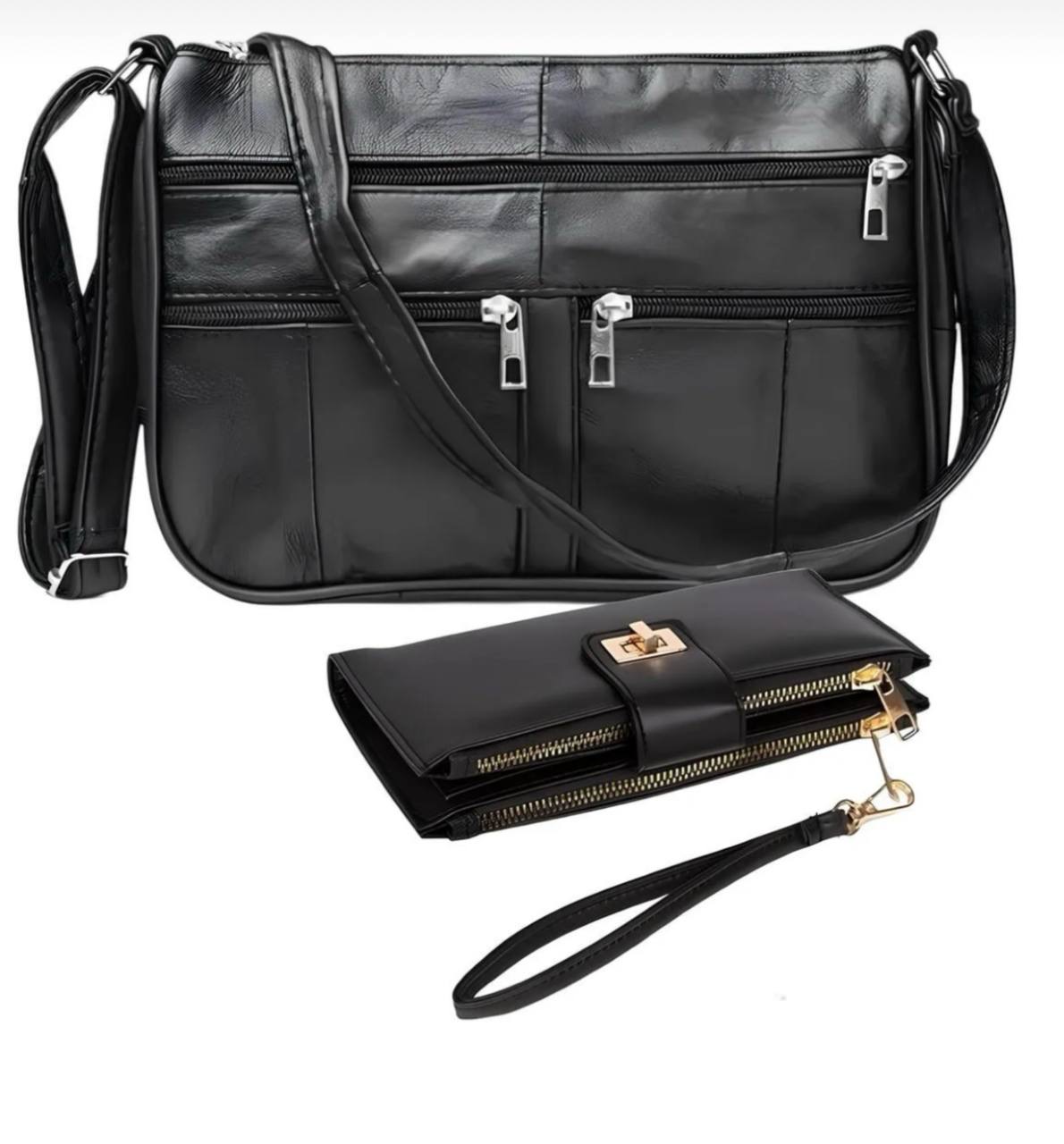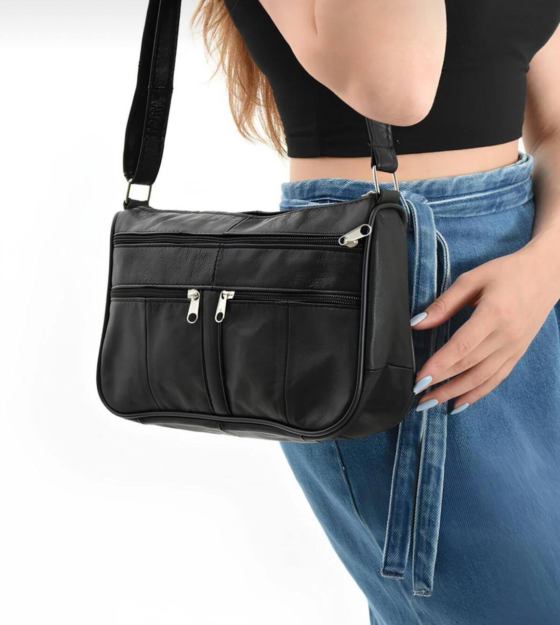 حقيبه نسائيه مصنوعه من الجلد الطبيعي متعدده الاقسام بتفاصيل السحاب