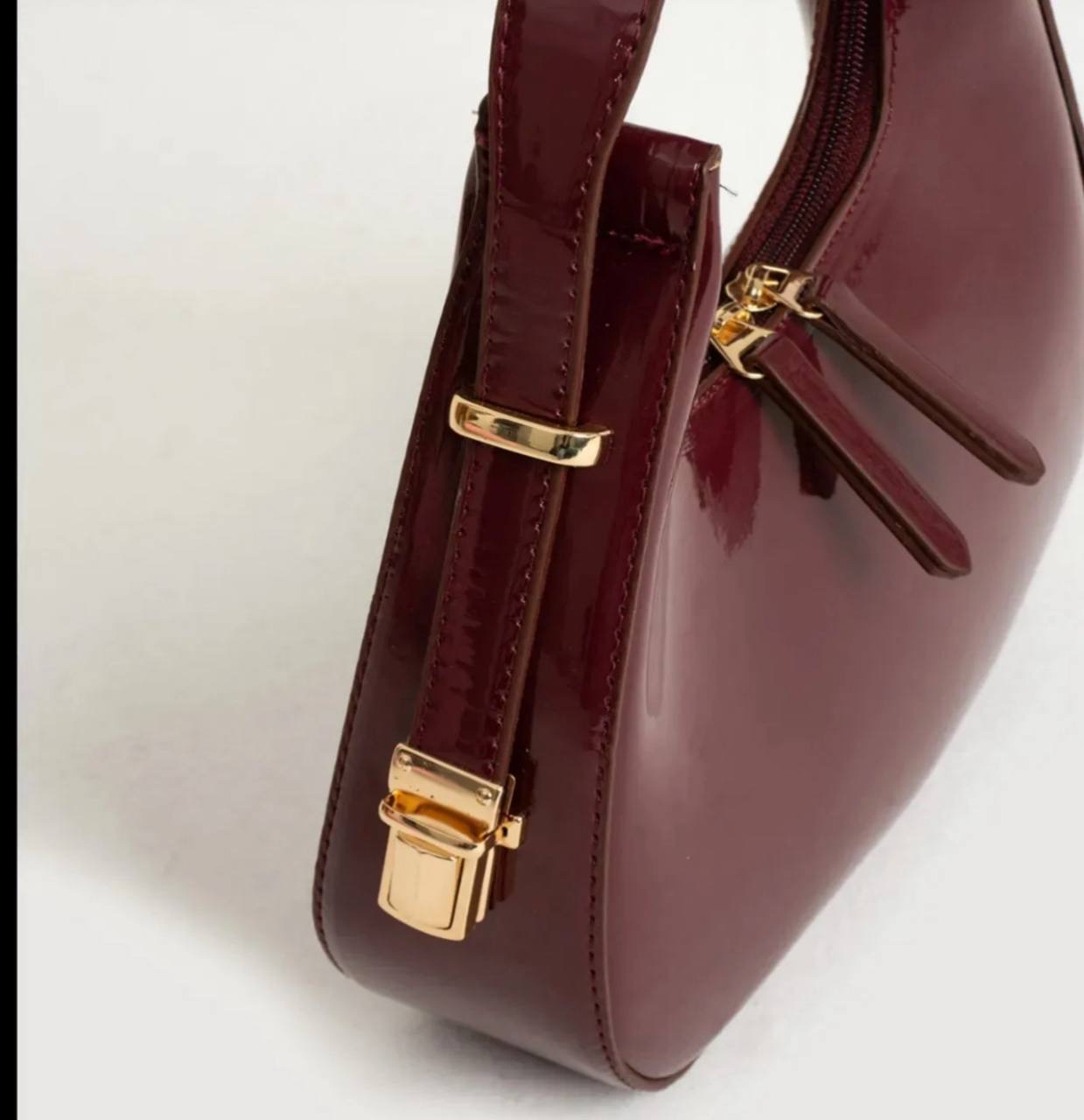 بتصميم انيق وراقٍ من الجلد الامع بتفاصيل اغلاق سحاب والمعدن الذهبي