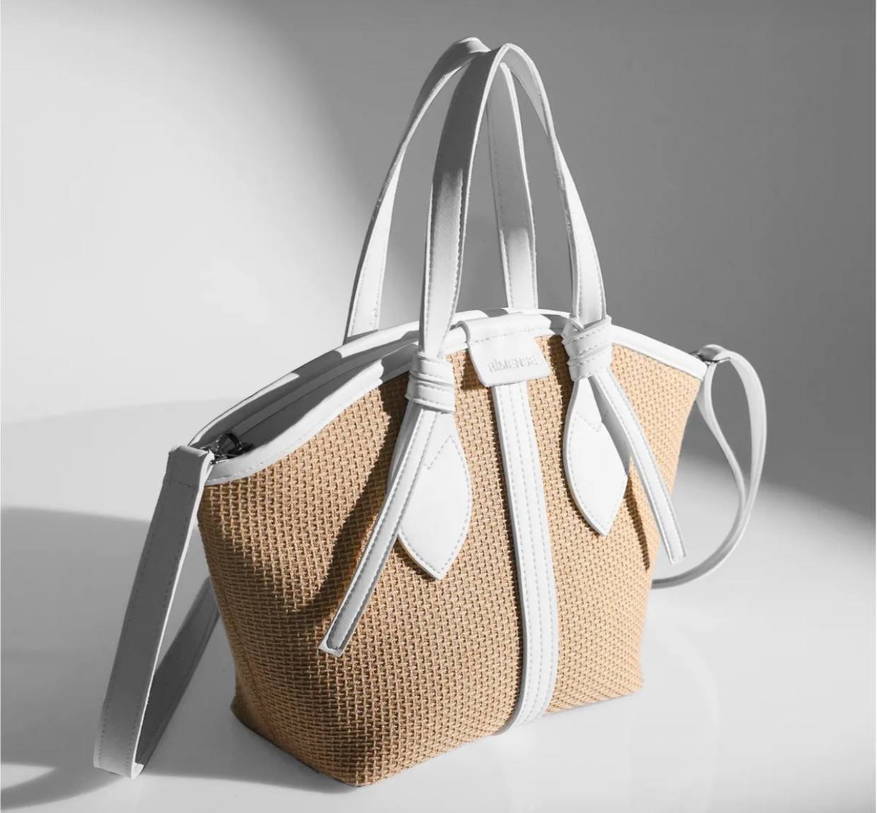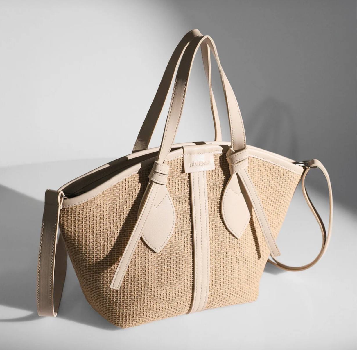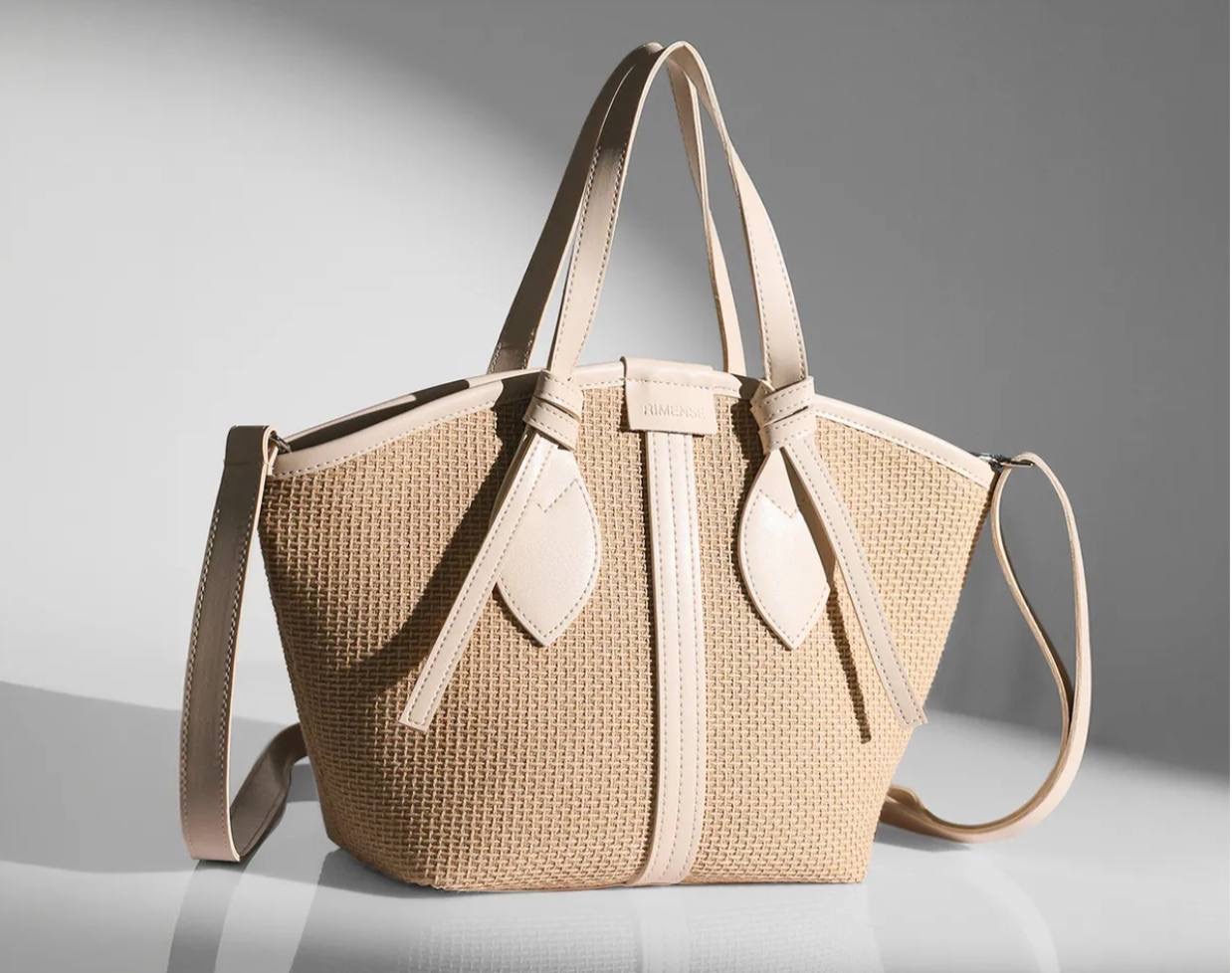 حقيبه يد وكتف نسائيه بتصميم حياكه القش وتفاصيل الجلد