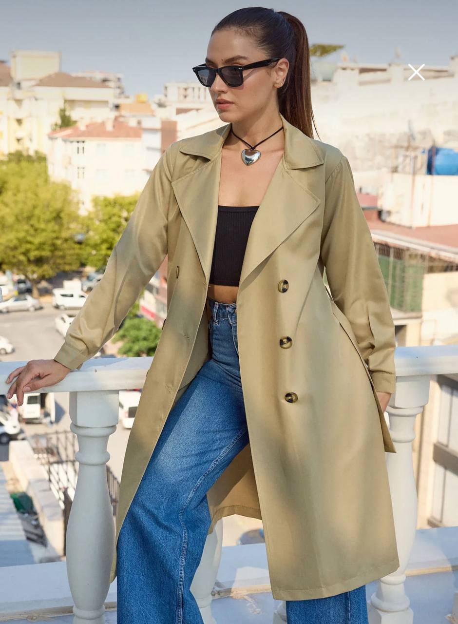 بتصميم طويل وياقه مزدوجه الصدر