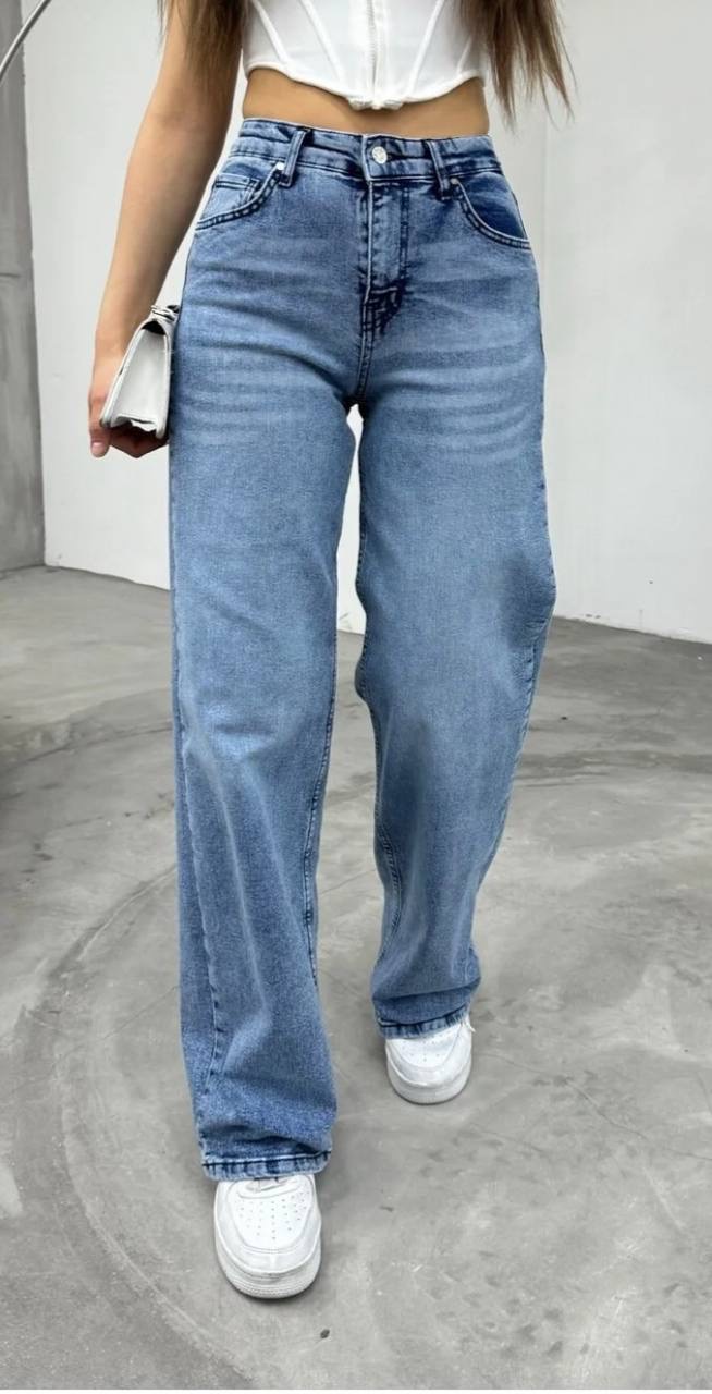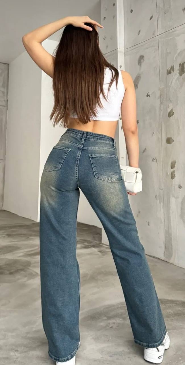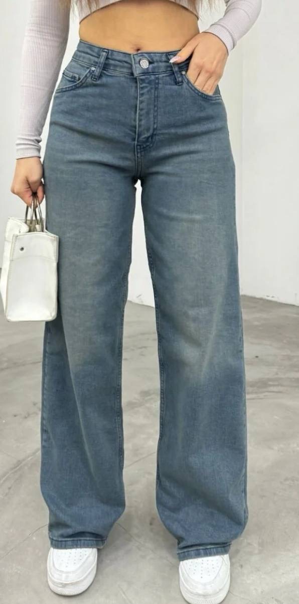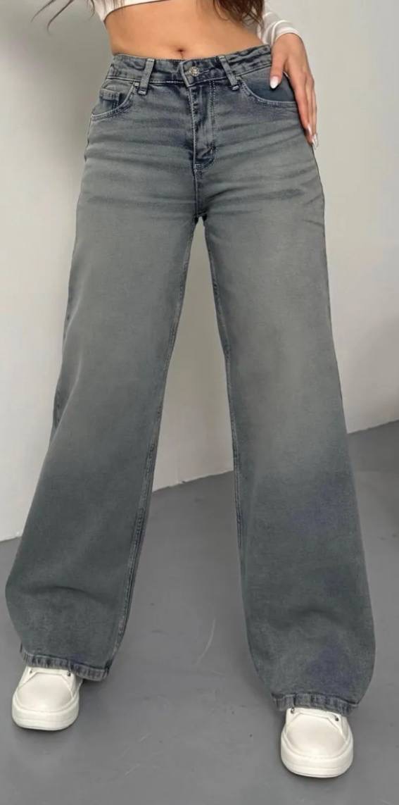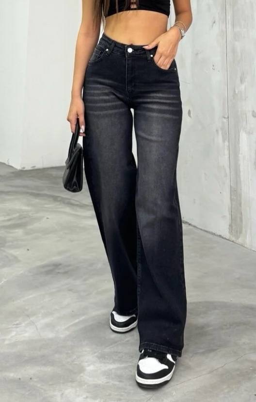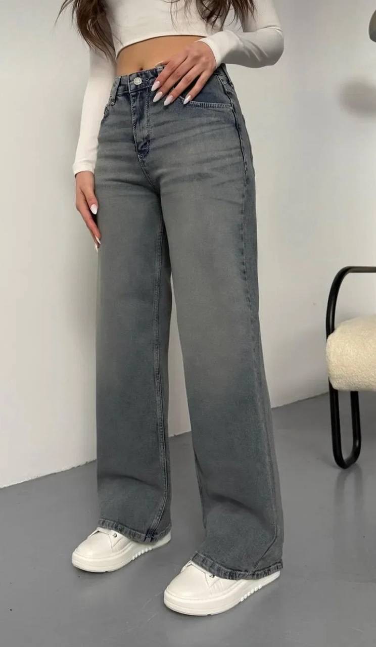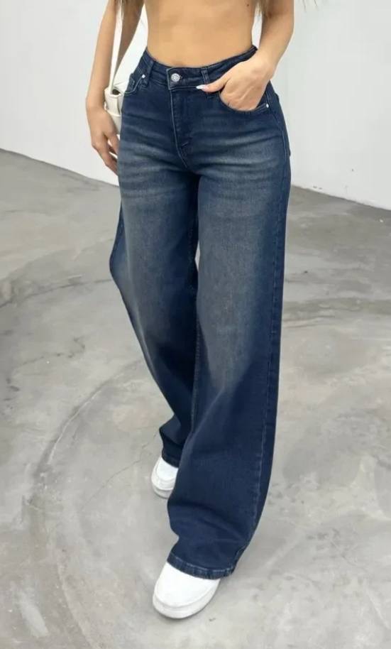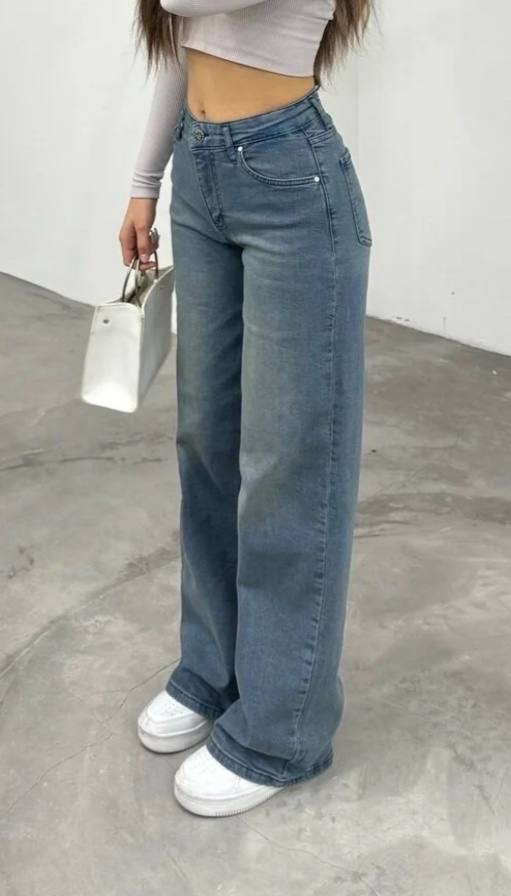 بنطال جينز نسائي ذو قصه واسعه وخصر مرتفع