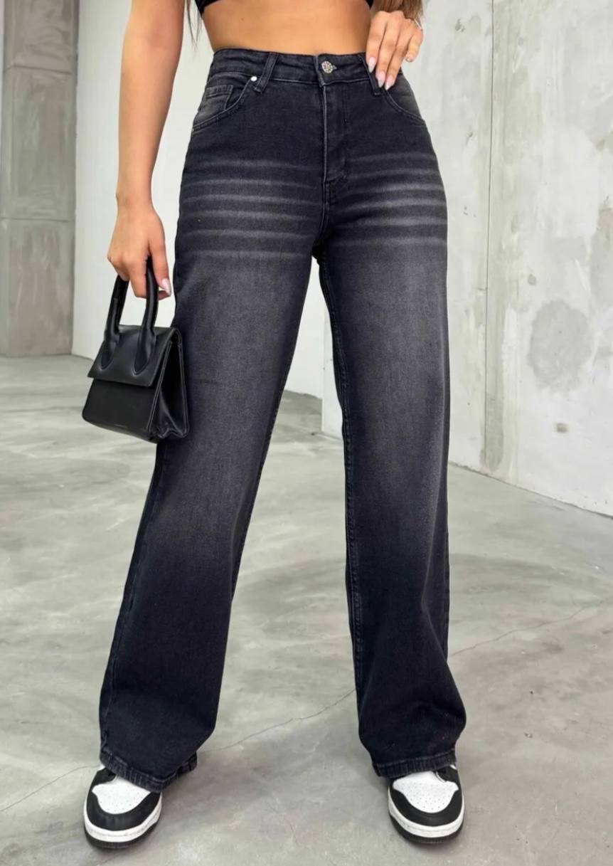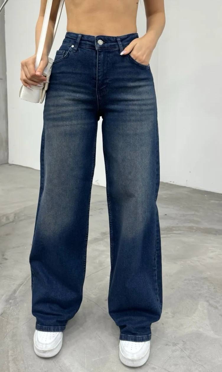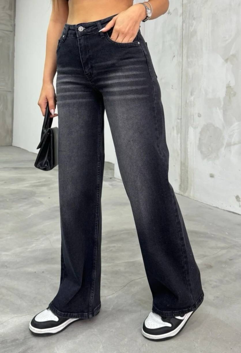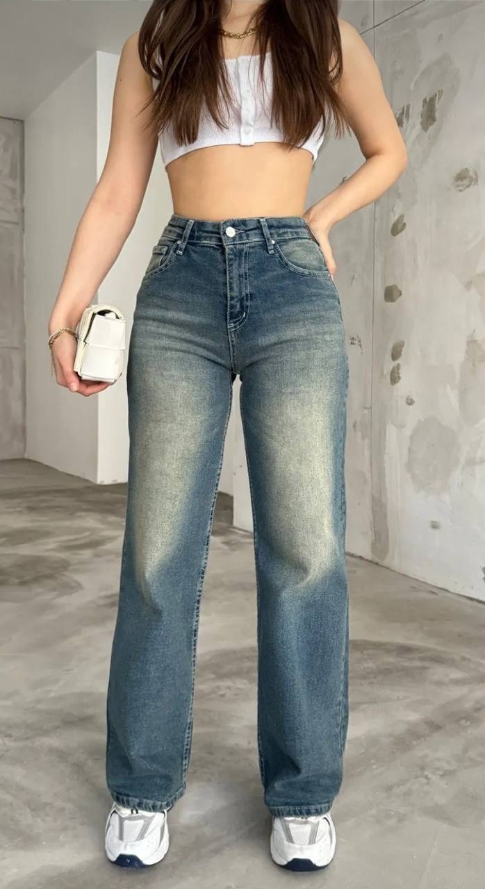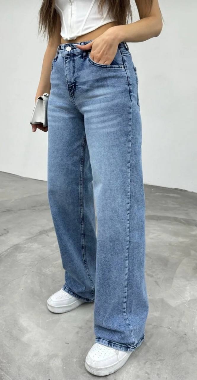 بنطال جينز نسائي ذو قصه واسعه وخصر مرتفع