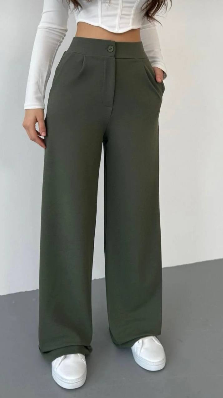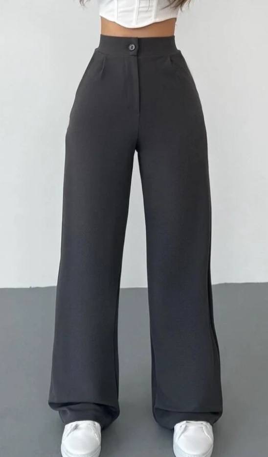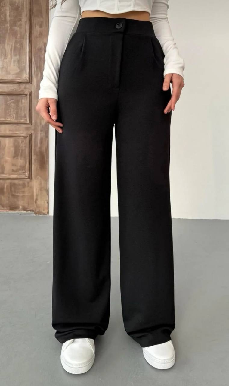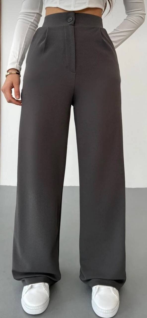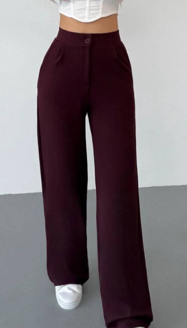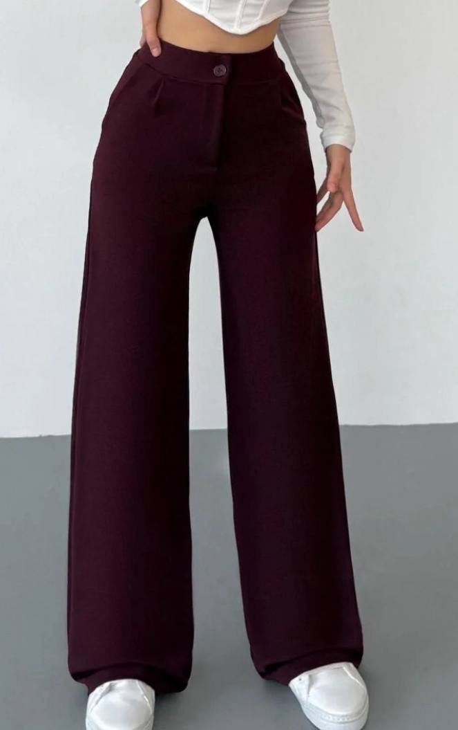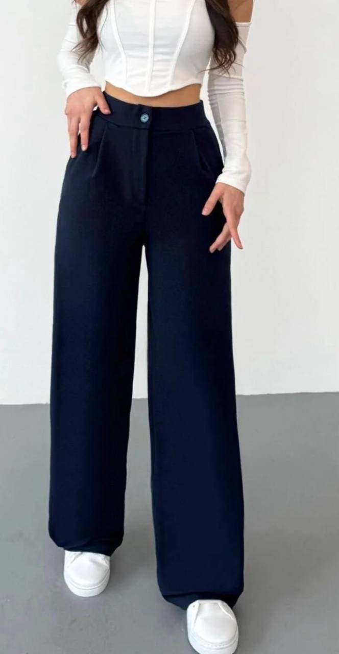 بنطلون نسائي بالازو palazzo فضفاض بقصه ارجل واسع وخصر عالي