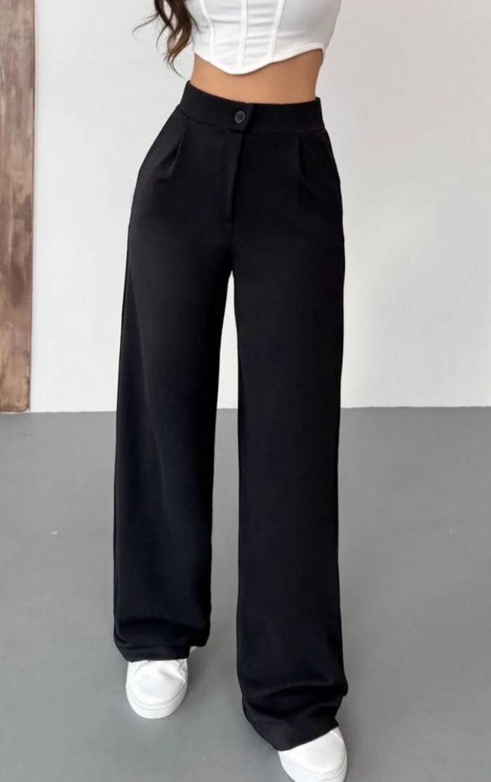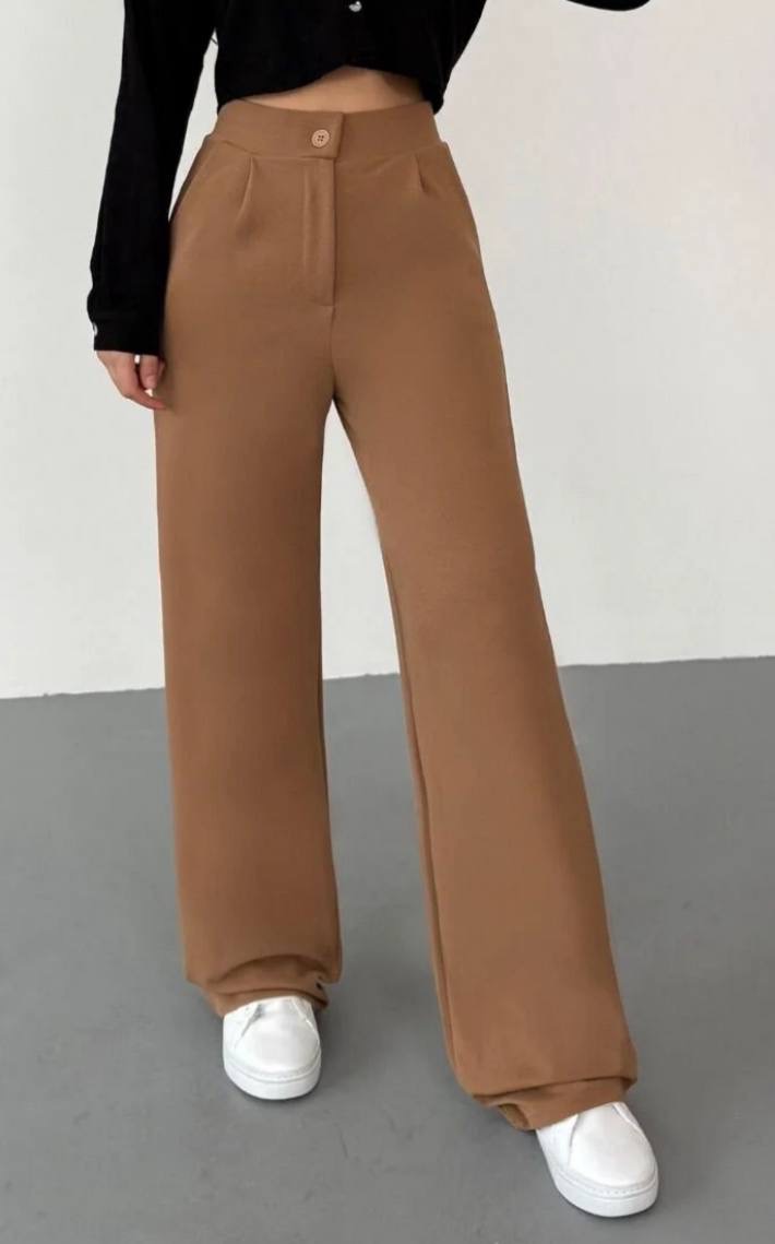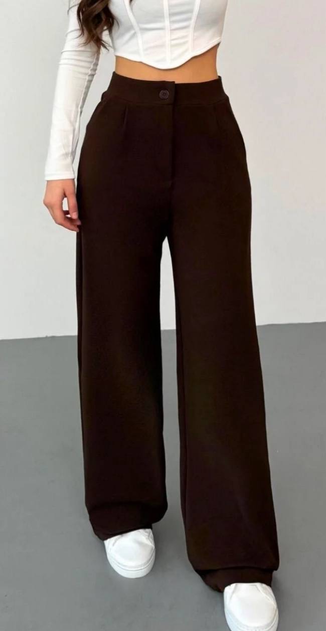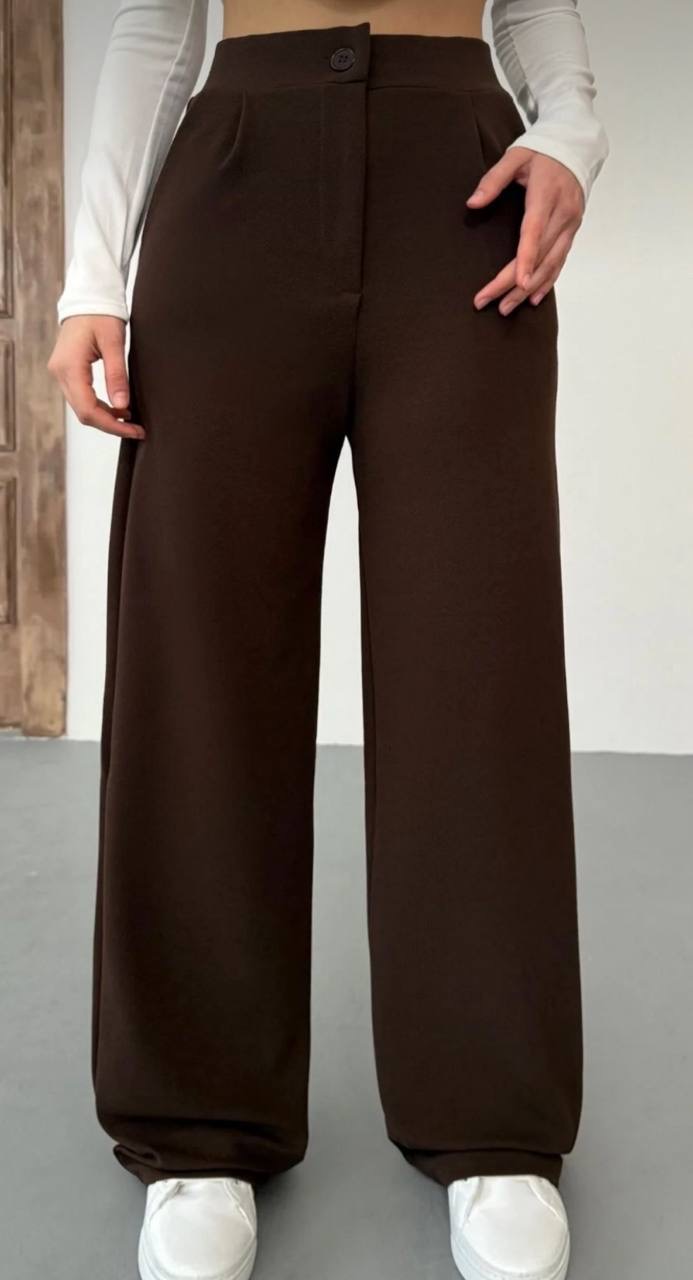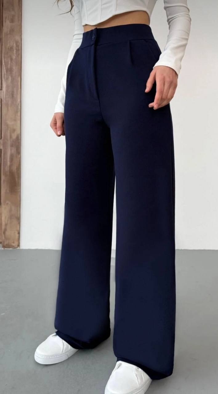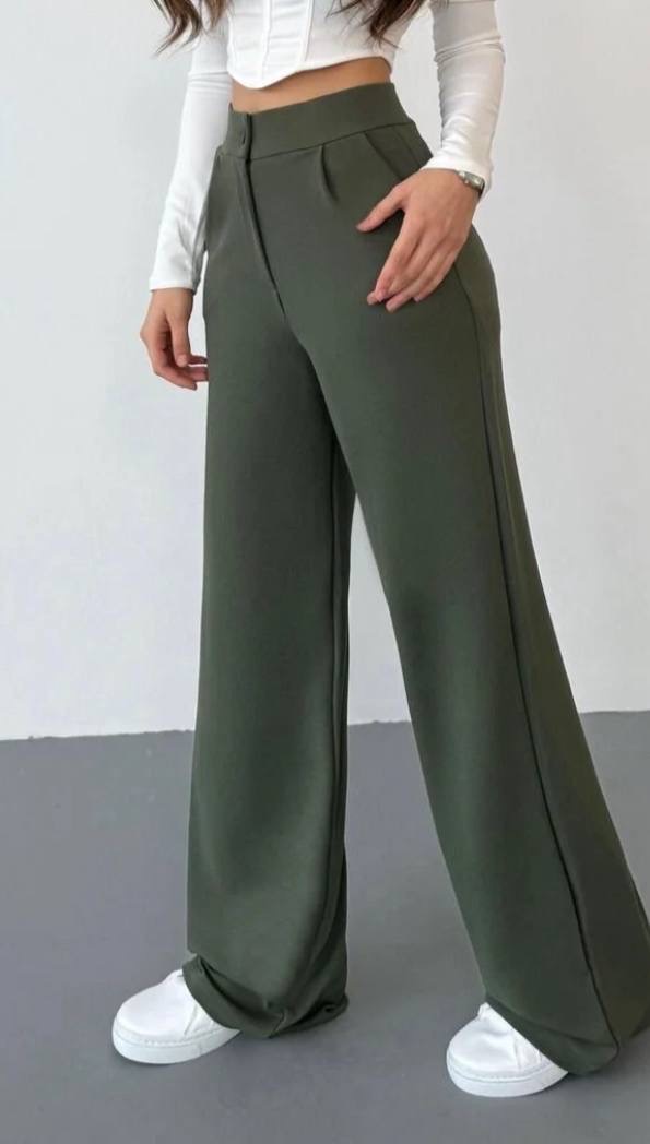 بنطلون نسائي بالازو palazzo فضفاض بقصه ارجل واسع وخصر عالي
