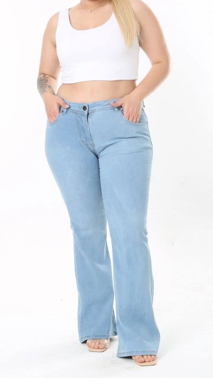 بنطلون جينز واسع الساق بمقاسات كبيره
