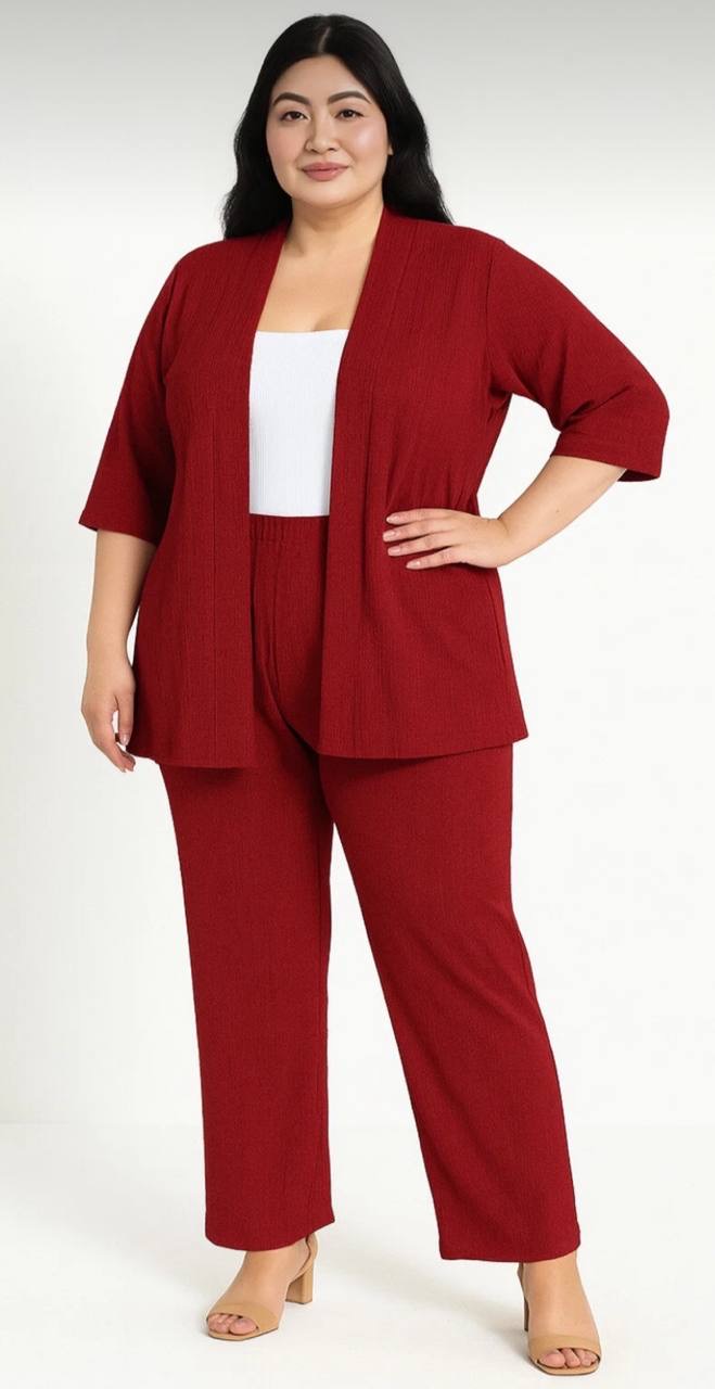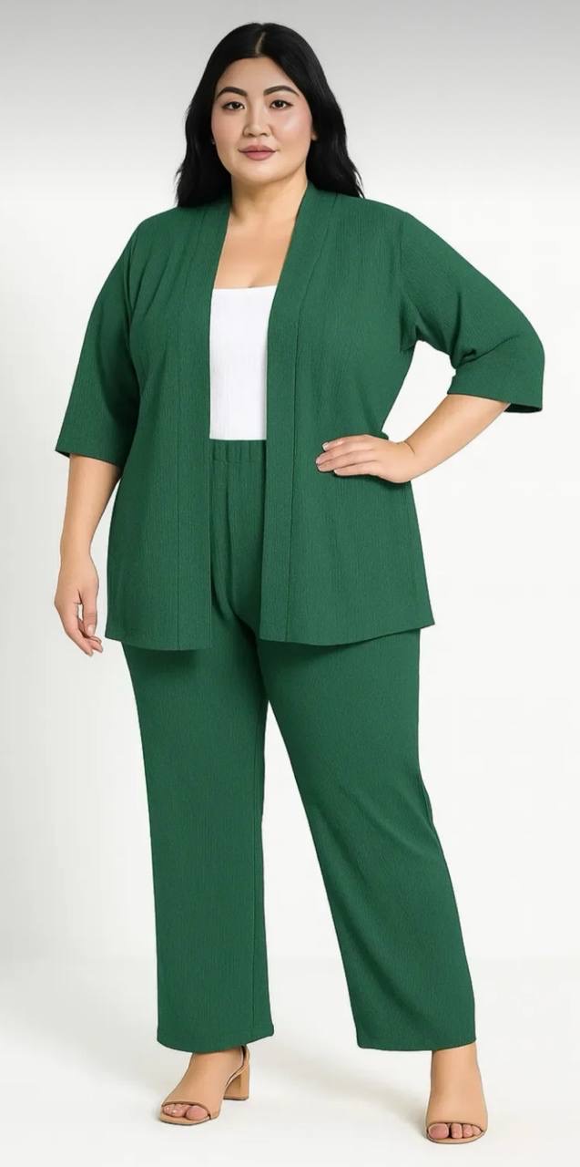 بدله كيمونو من نسيج القماش الناعم وبنطال قصه الارجل واسعه