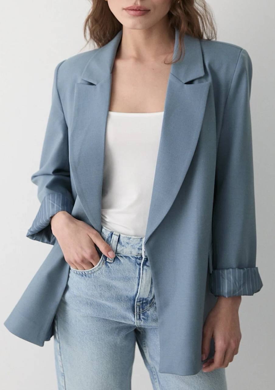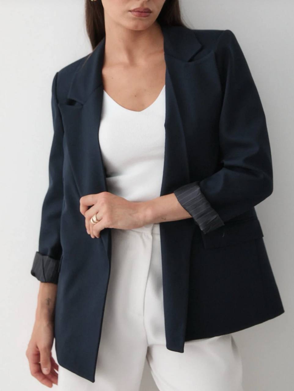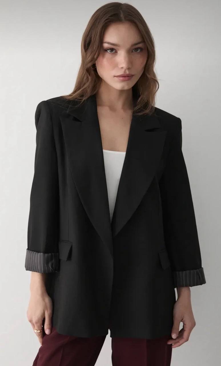 بليزر نسائي بقصه واسعه مستقيمه مبطنه بالكامل بتصميم البطانه المخططه لاضافه لمسه انيقه