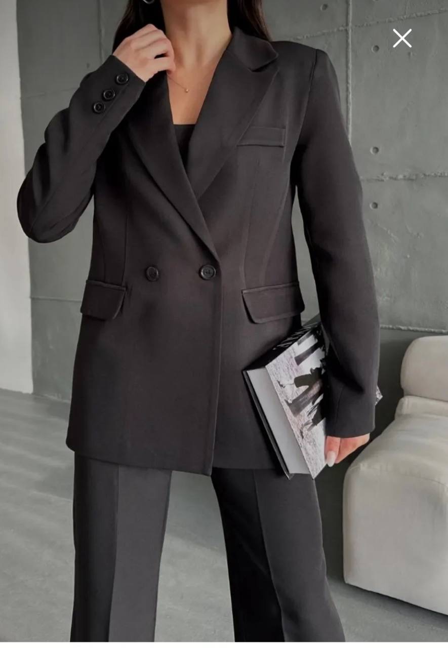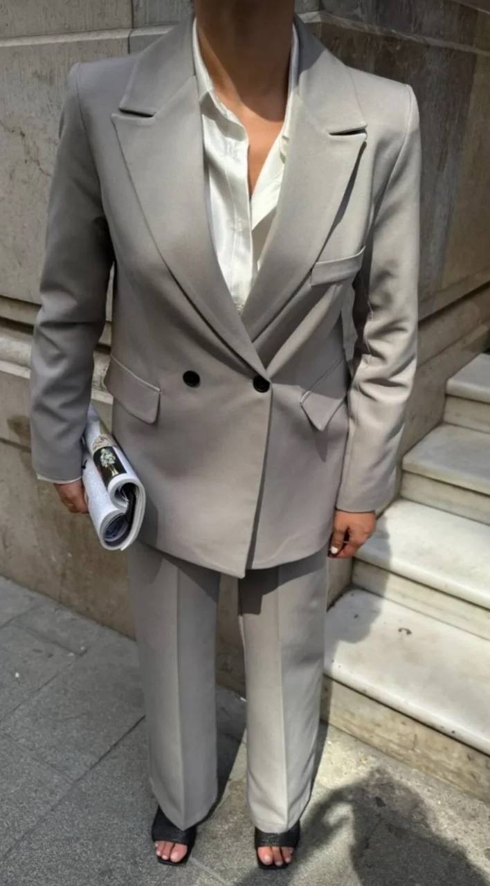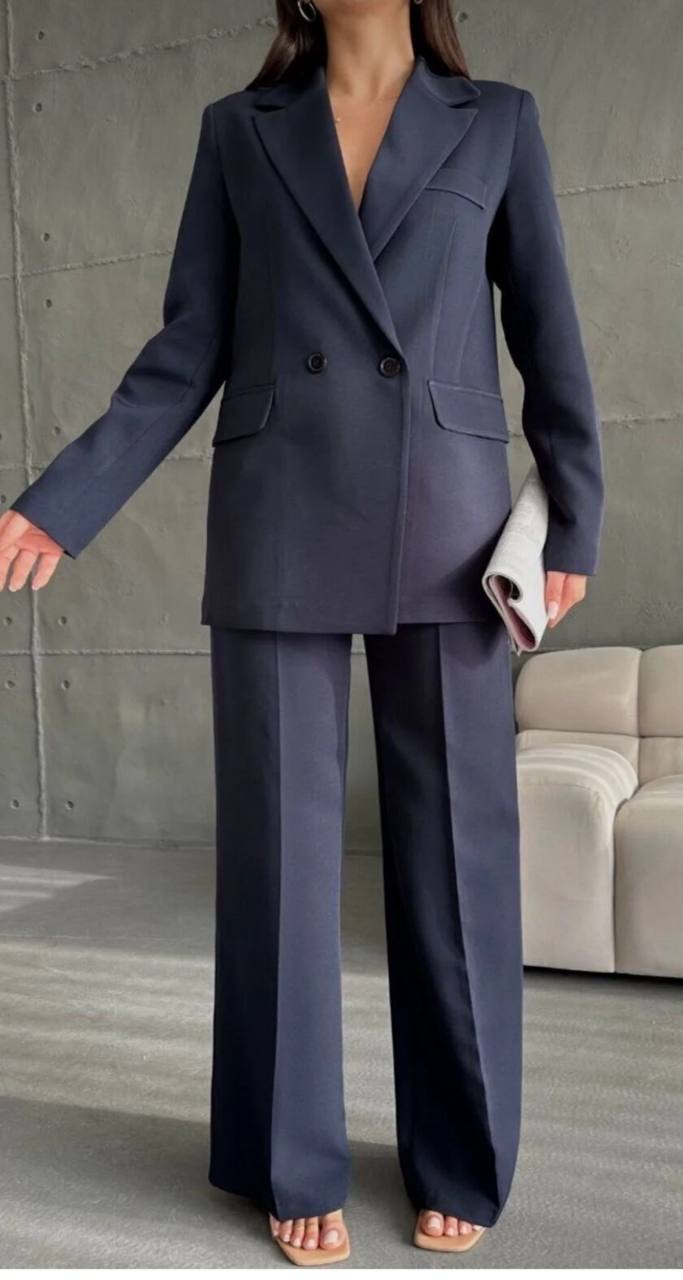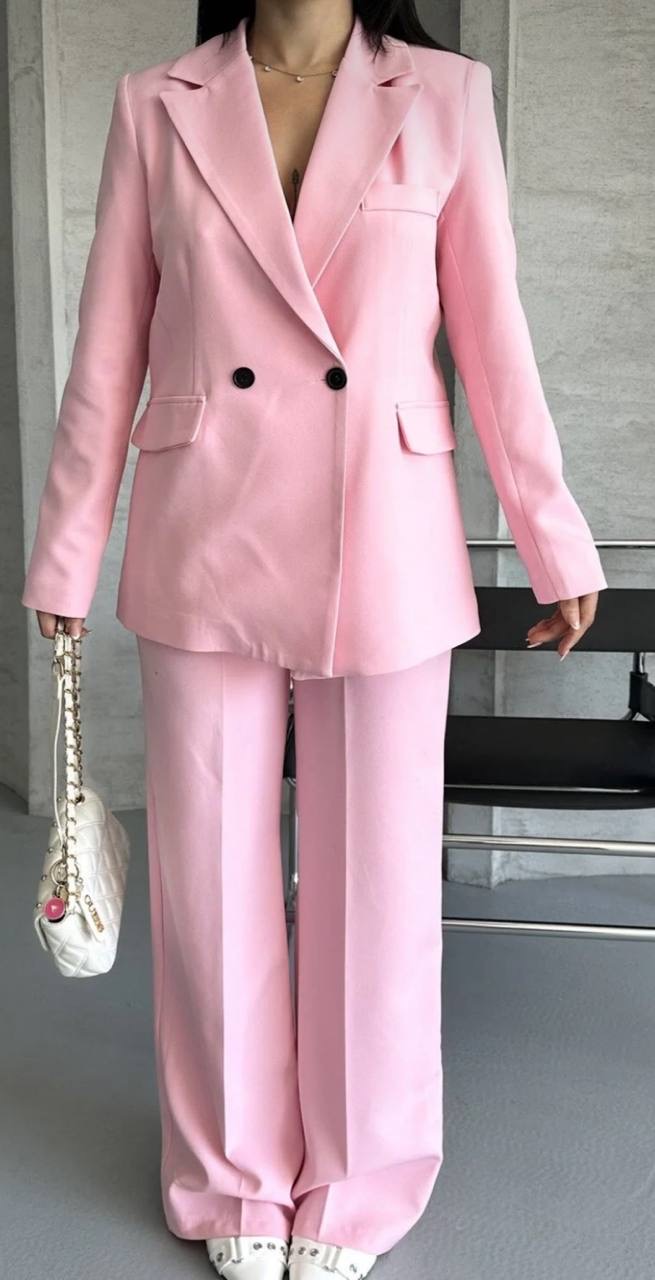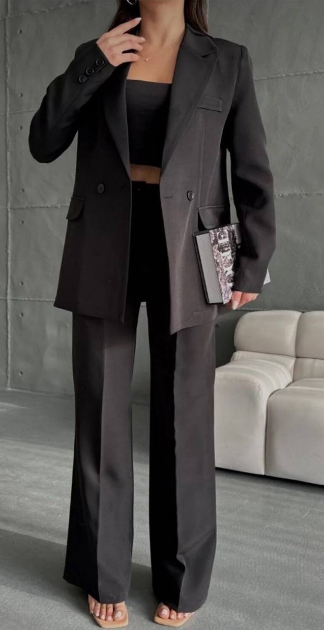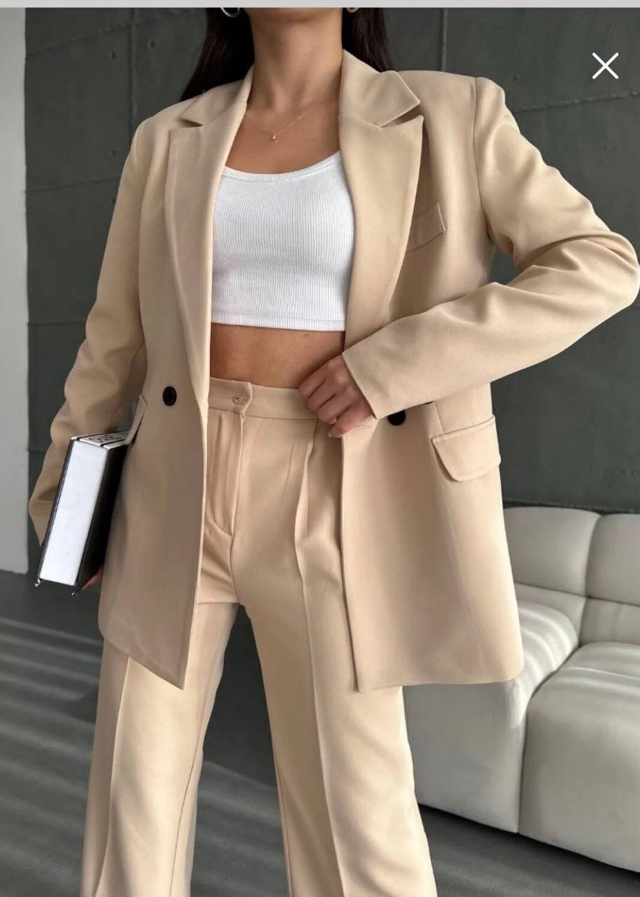طقم من قطعتين جاكيت بليزر بقصه واسعه واغلاق الازرار