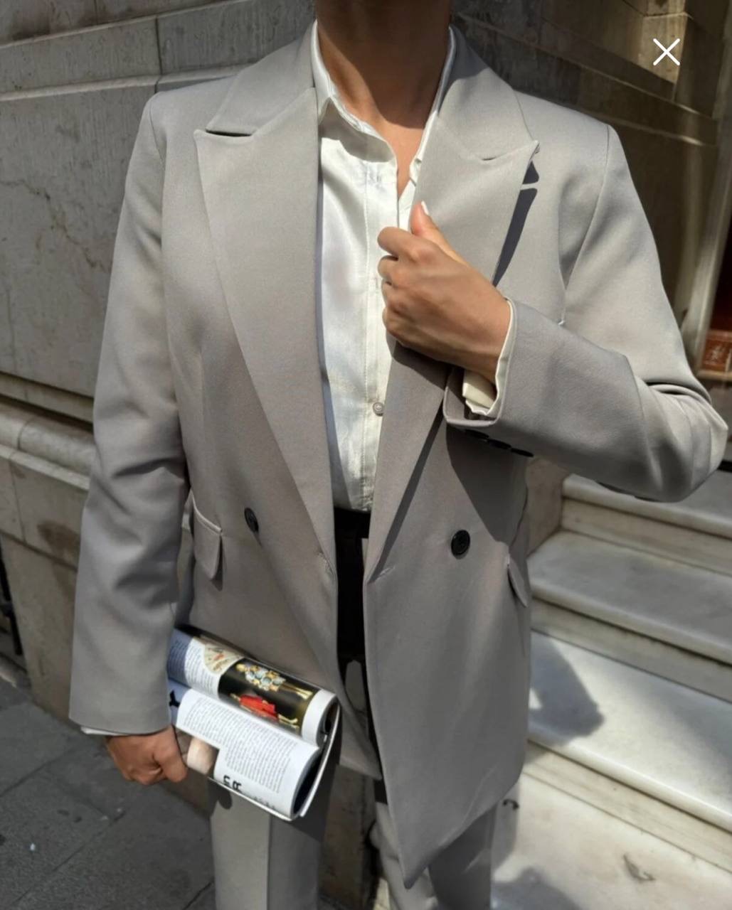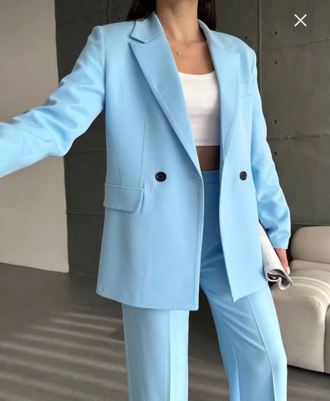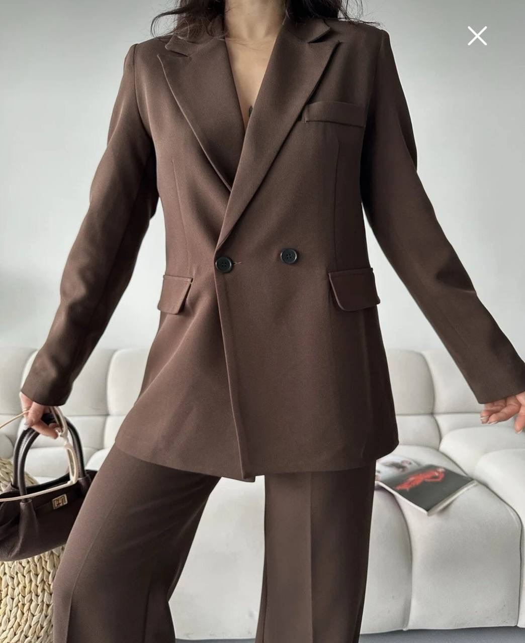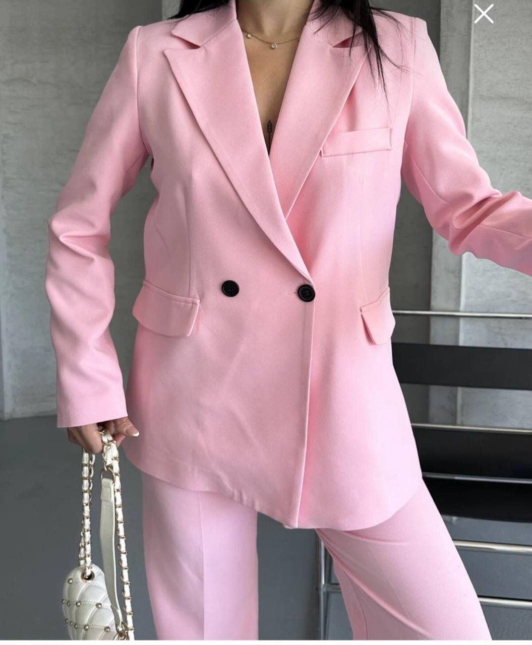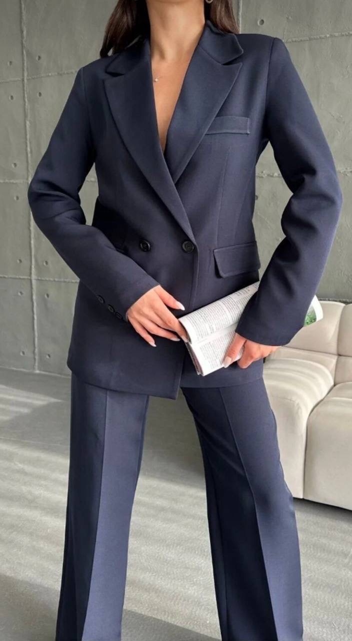 طقم من قطعتين جاكيت بليزر بقصه واسعه واغلاق الازرار