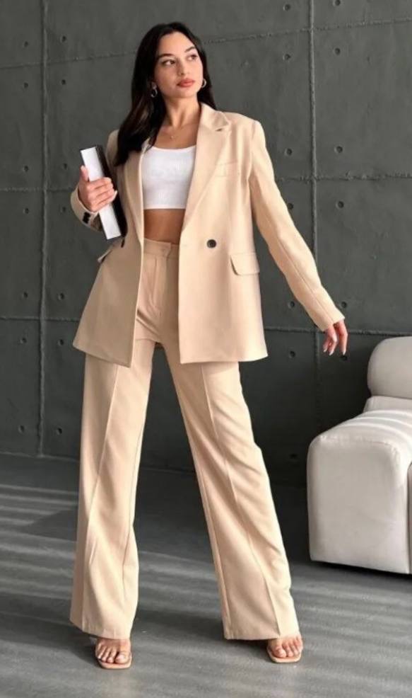 طقم نسائي جاكيت وبنطال بالازو