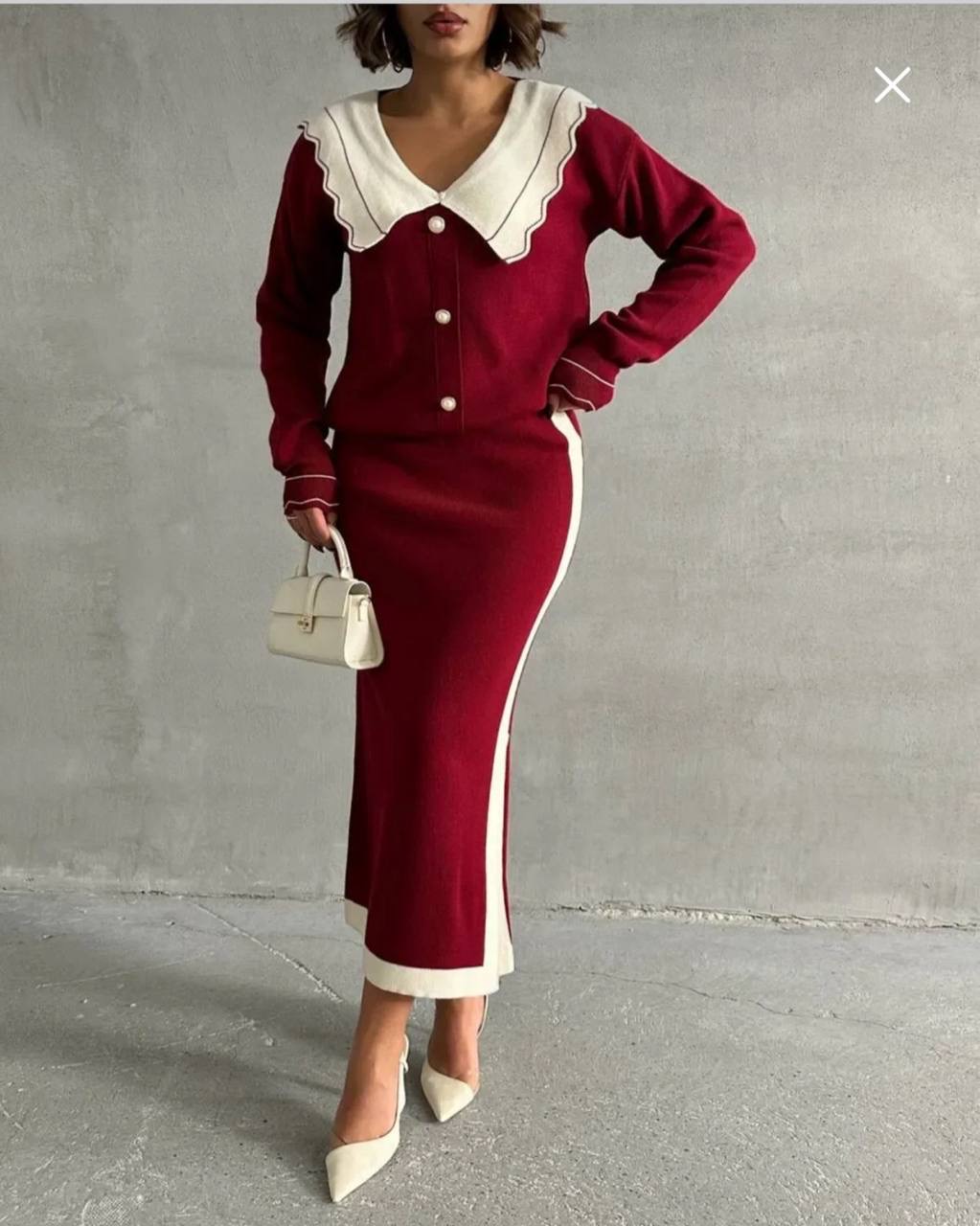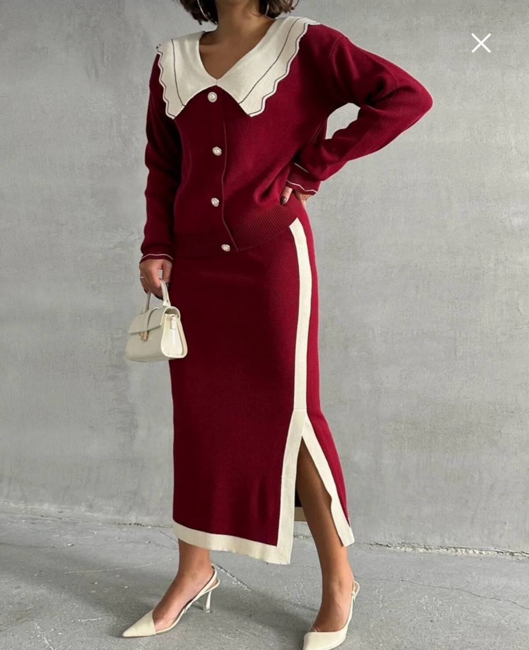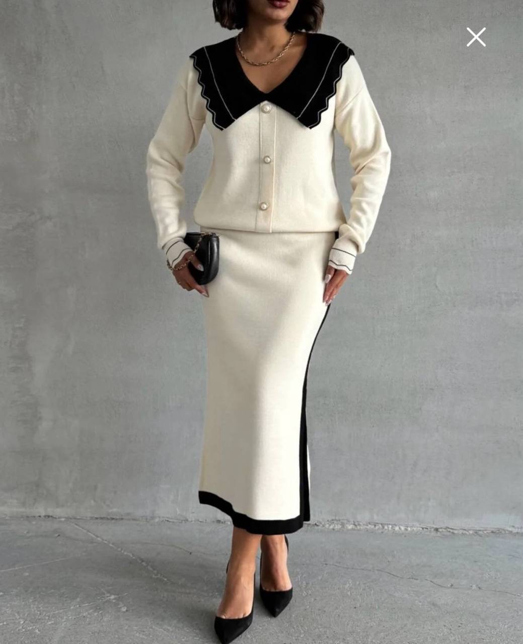 طقم تريكو تنوره بفتحه جانبيه