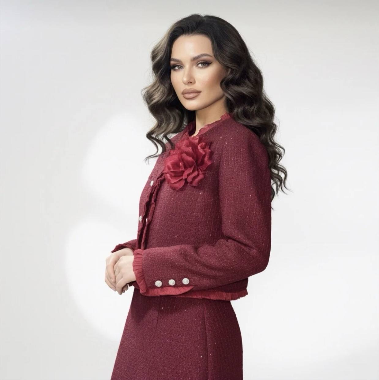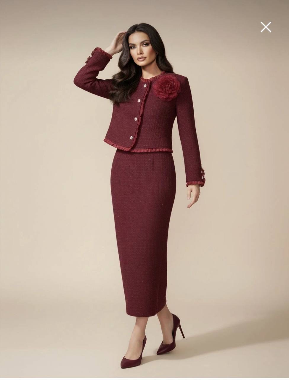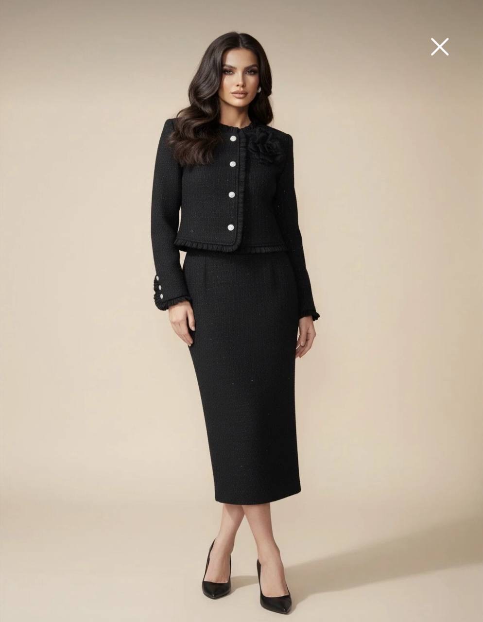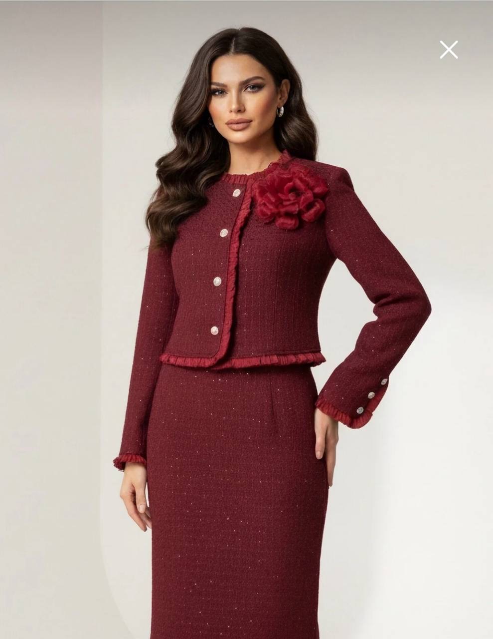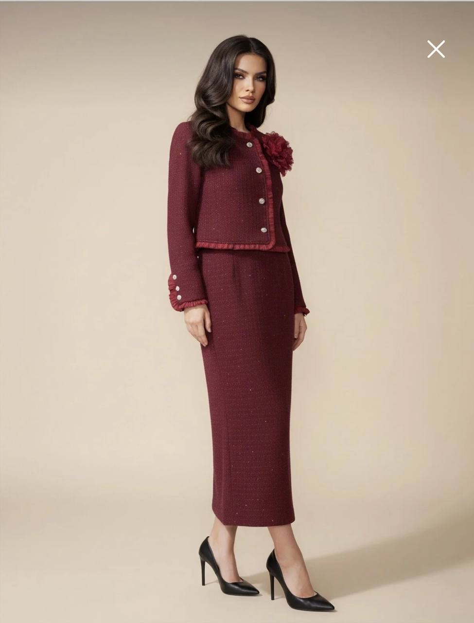طقم نسائي من التويد ستره وتنوره