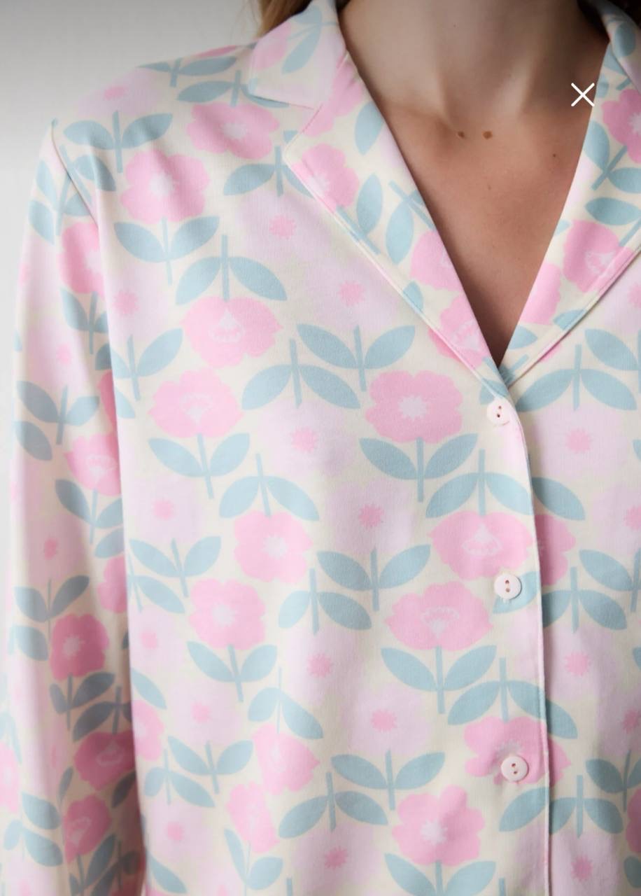 تفاصيل ياقه القميص واغلاق الازرار بنقشه الزهور