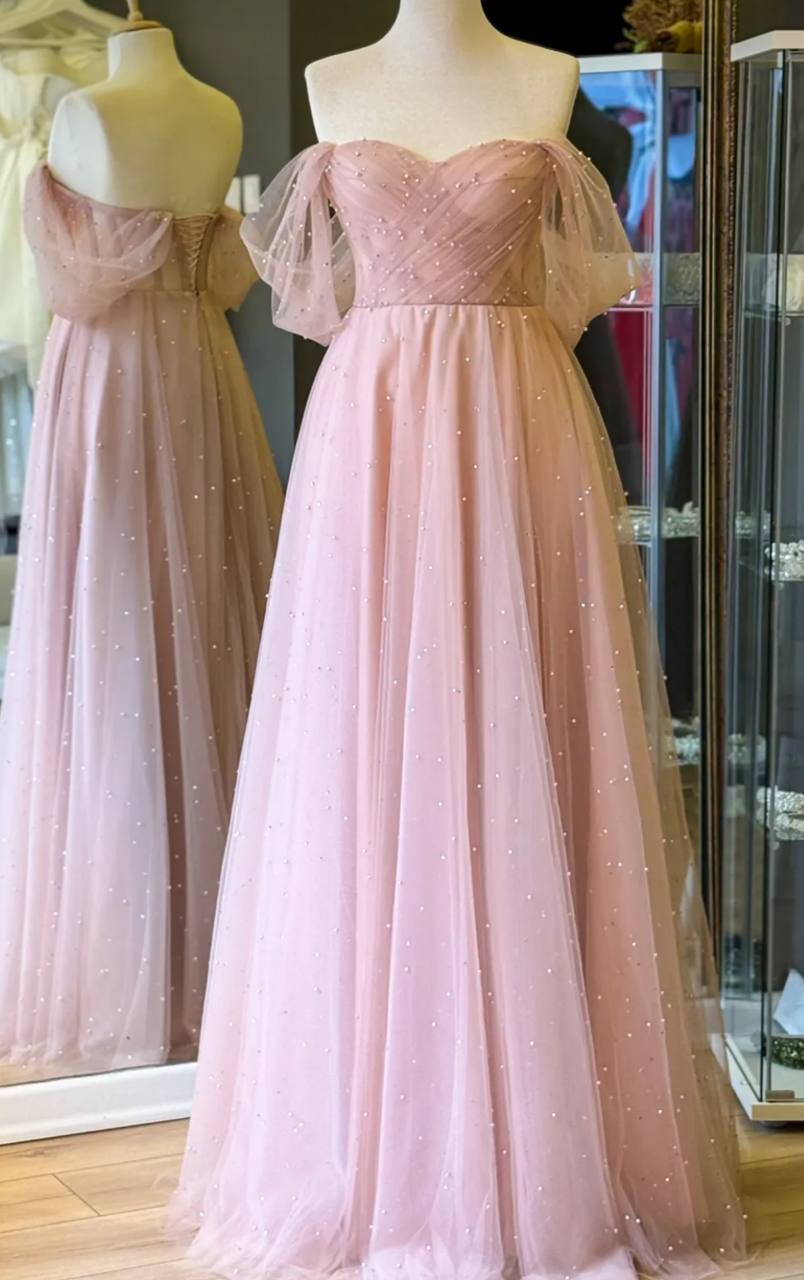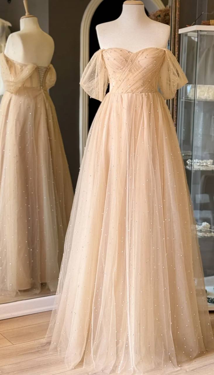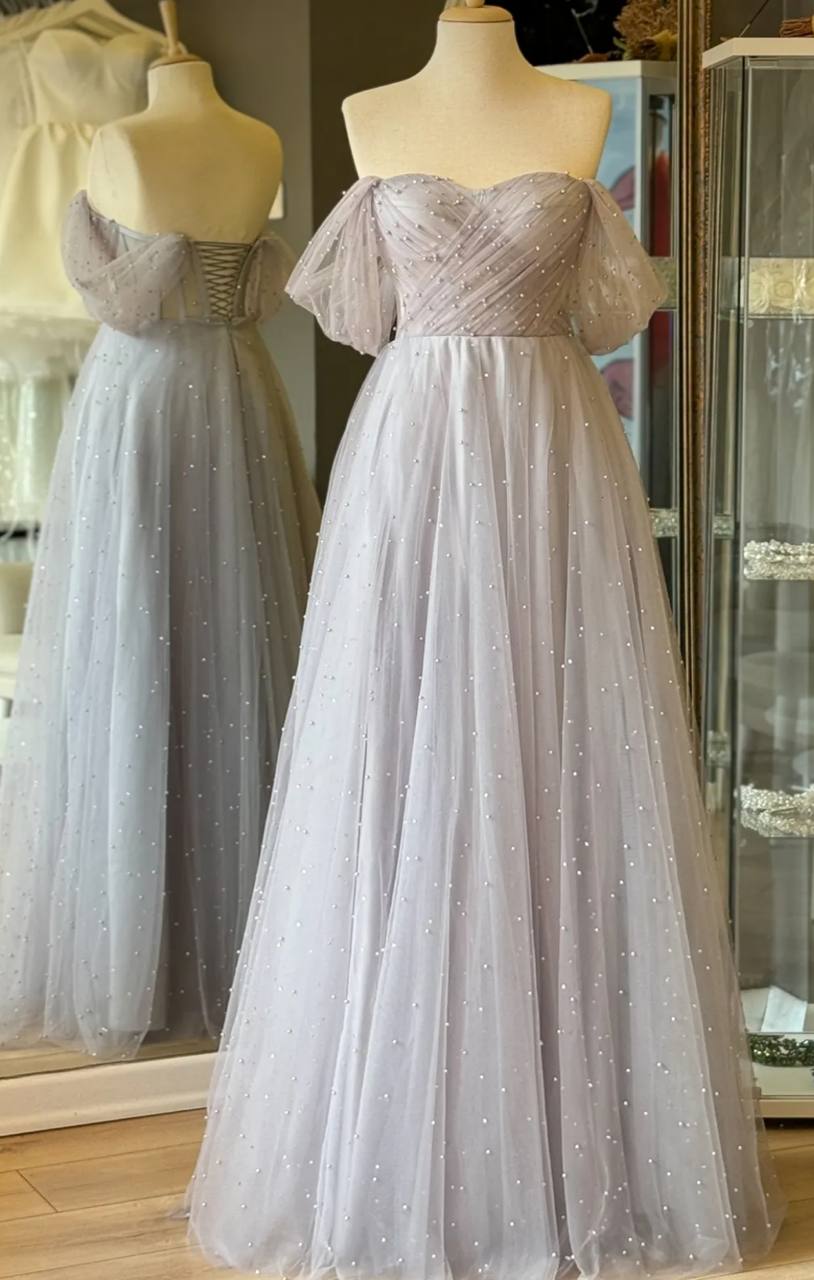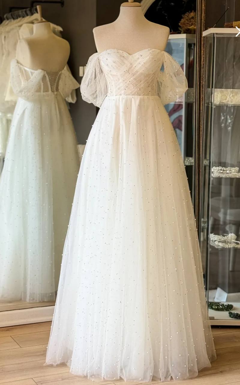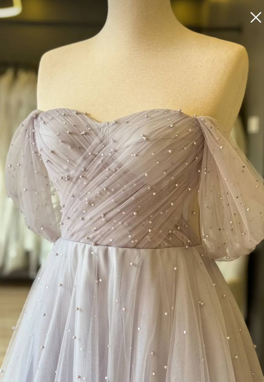 فستان للسهره المناسبات وحفلات الخطوبه والزفاف من الدانتيل مرصع باللؤلؤ اللامع وقصه صدر على شكل قلب