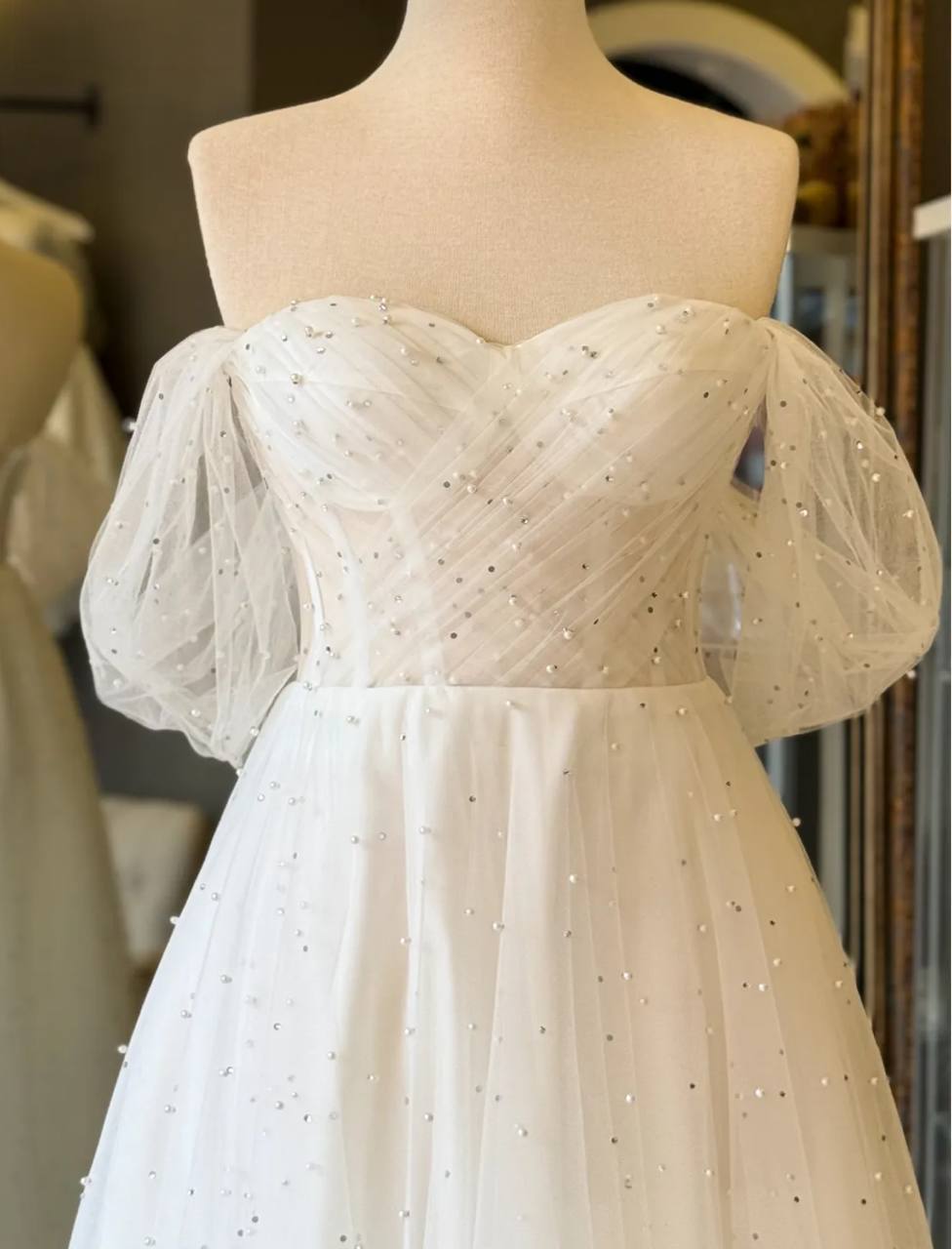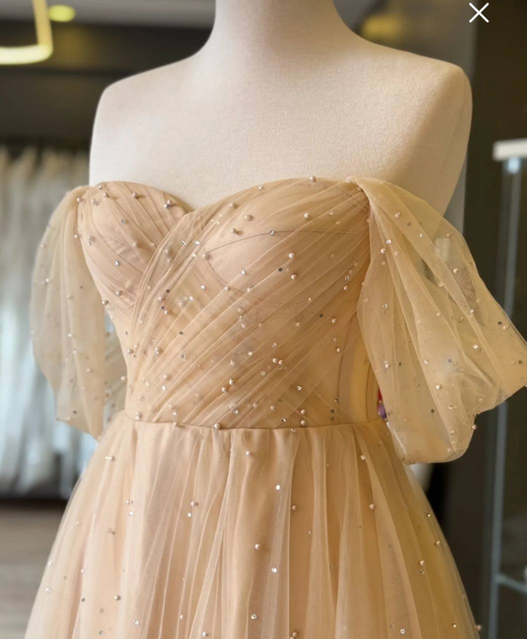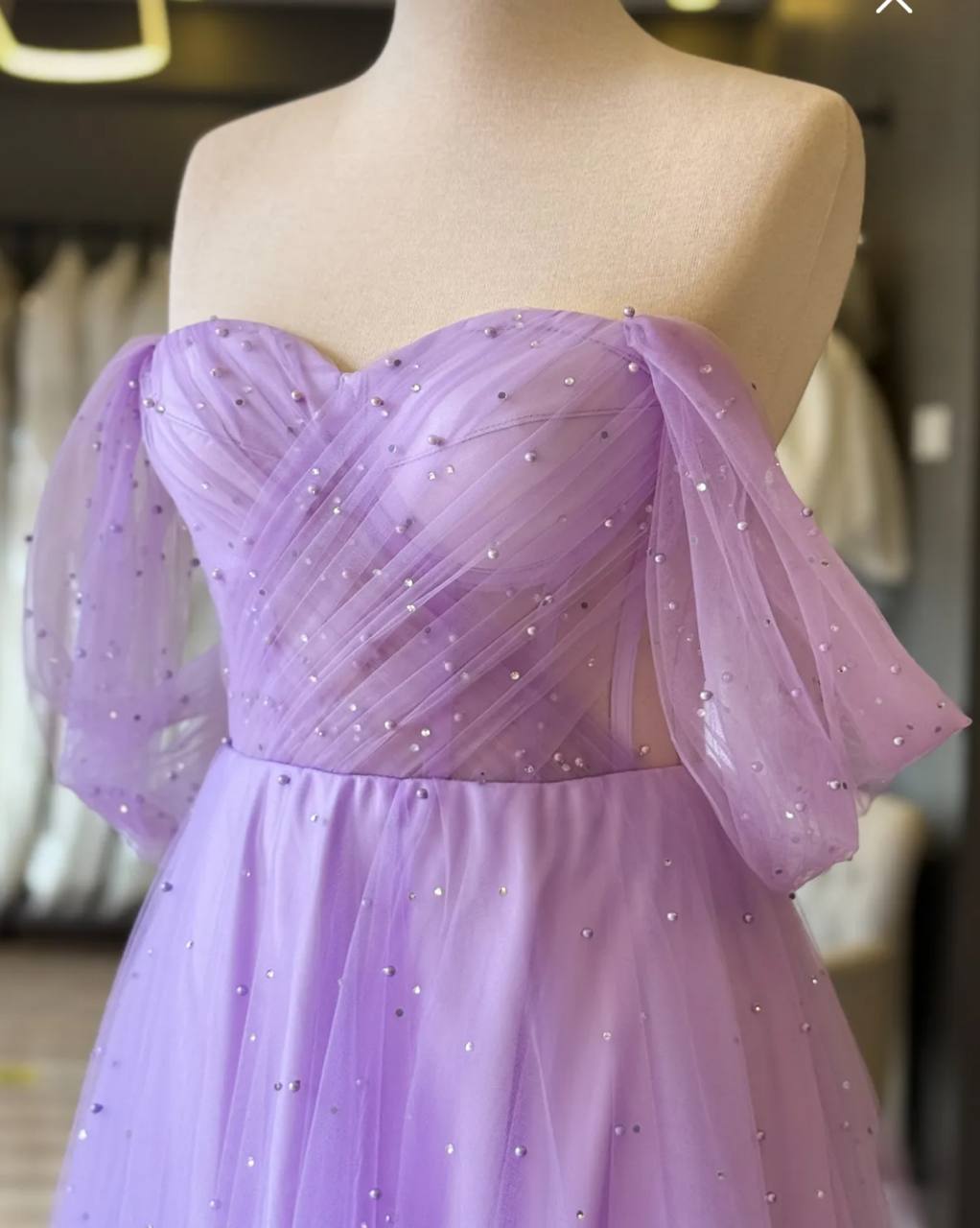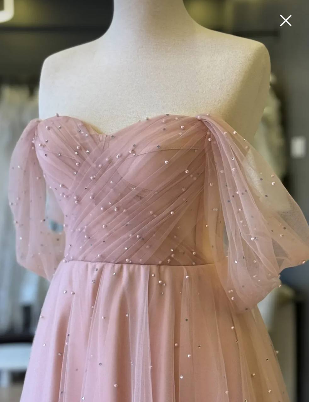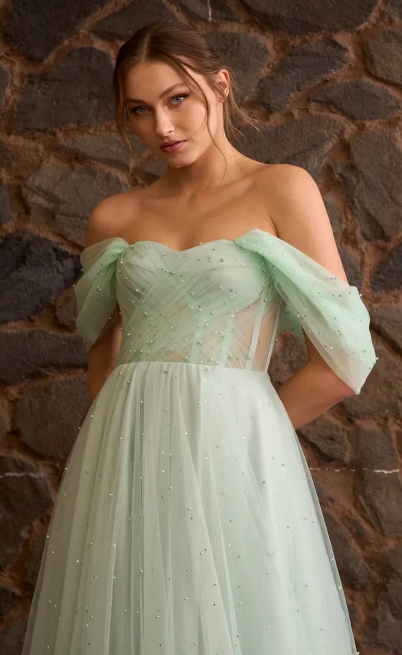 فستان للسهره المناسبات وحفلات الخطوبه والزفاف من الدانتيل مرصع باللؤلؤ اللامع وقصه صدر على شكل قلب
