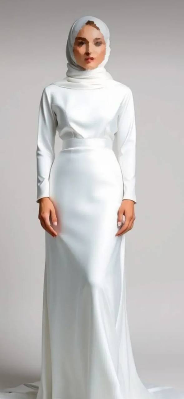 فستان زفاف للمحجبات من قماش الساتان بياقه مرتفعه وازرار اغلاق بالظهر