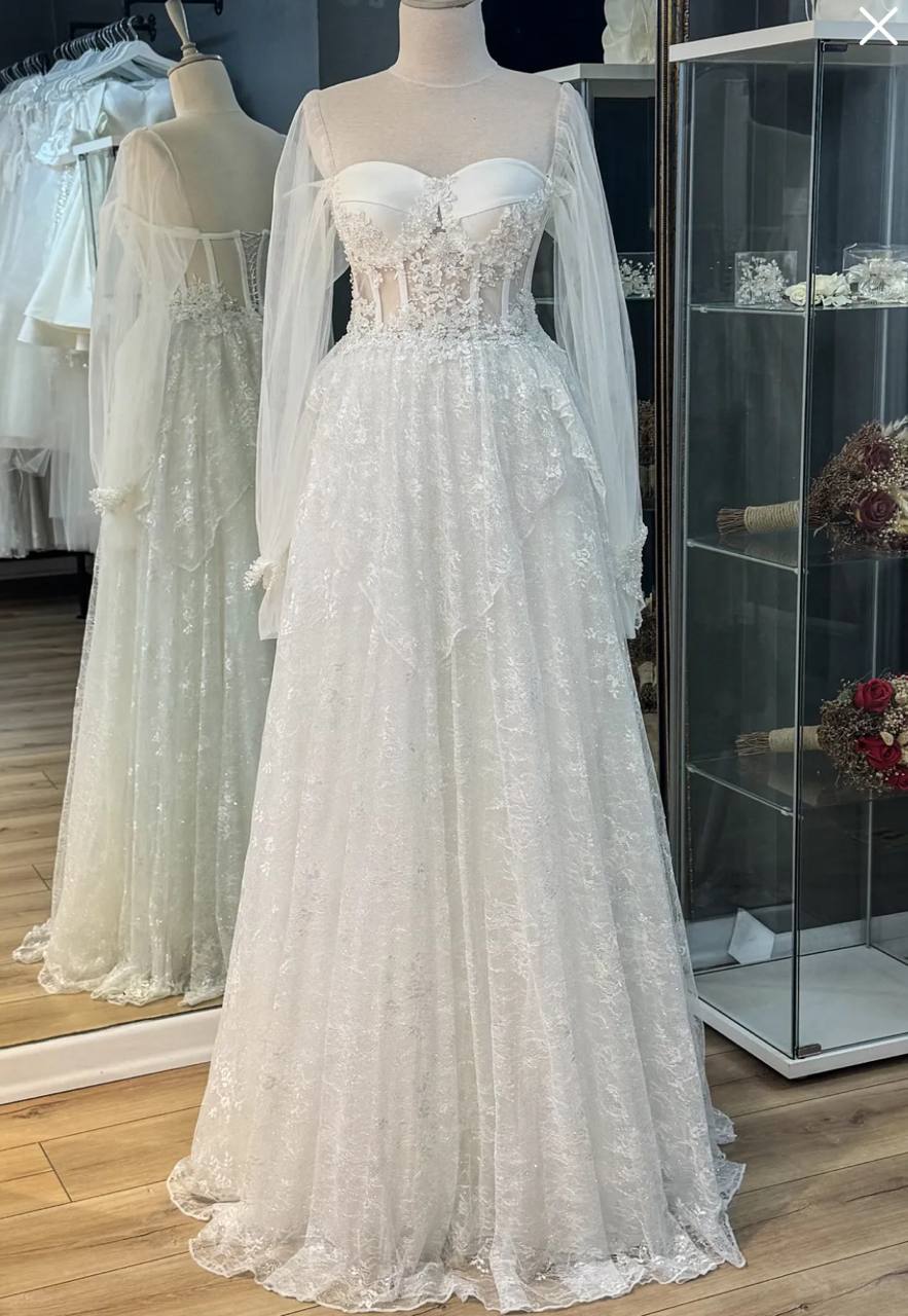 فستان زفاف بتفاصيل الدانتيل اللامع بتطريز انيق ومُلفت