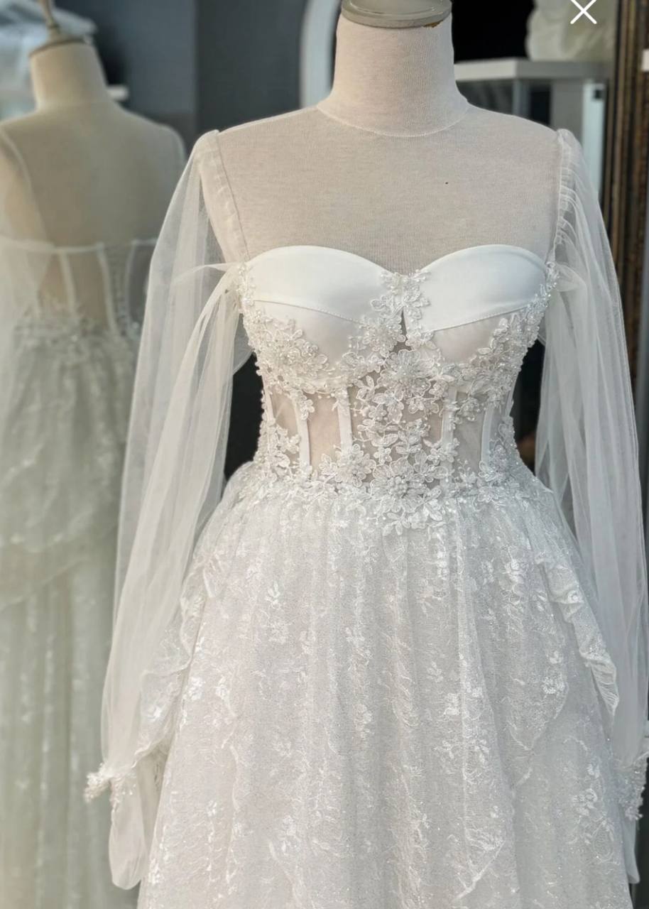 قصه صدر على شكل قلب بأكمام شفافه من الدانتيل يضفي لمسه انثويه لاطلالتك